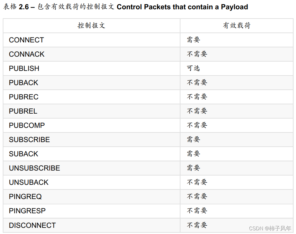 第二部分就是有效载荷的控制报文,我更愿意理解为是扩展的控制报文,PUBLISH除外(因为其有效载荷就是纯数据,与MQTT无关)