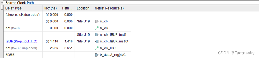 在Source Clock Path中,可以看到源端的时延特征。同步时钟网络在系统前级需要有一个IBUF,即输入缓冲。