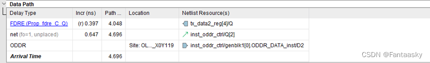 其中,第一个net和IBUF的延迟是寄存器前分支时钟网络再前面的主干时钟网络(与目的端的共同路径)。