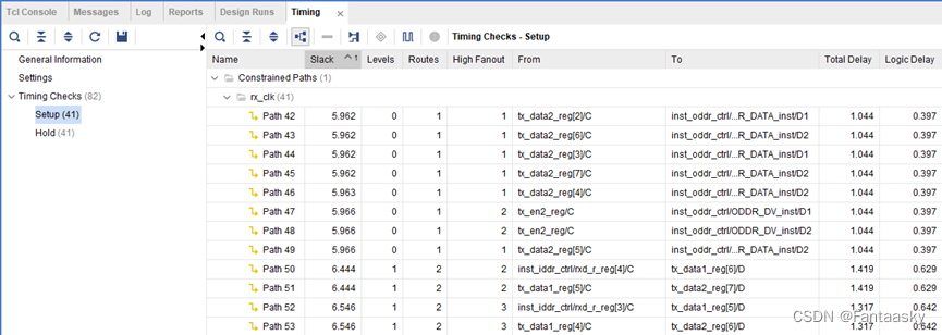 Total Negative Slack:总负松弛,当满足所有时序约束时,为0ns,有冲突时,为负数。