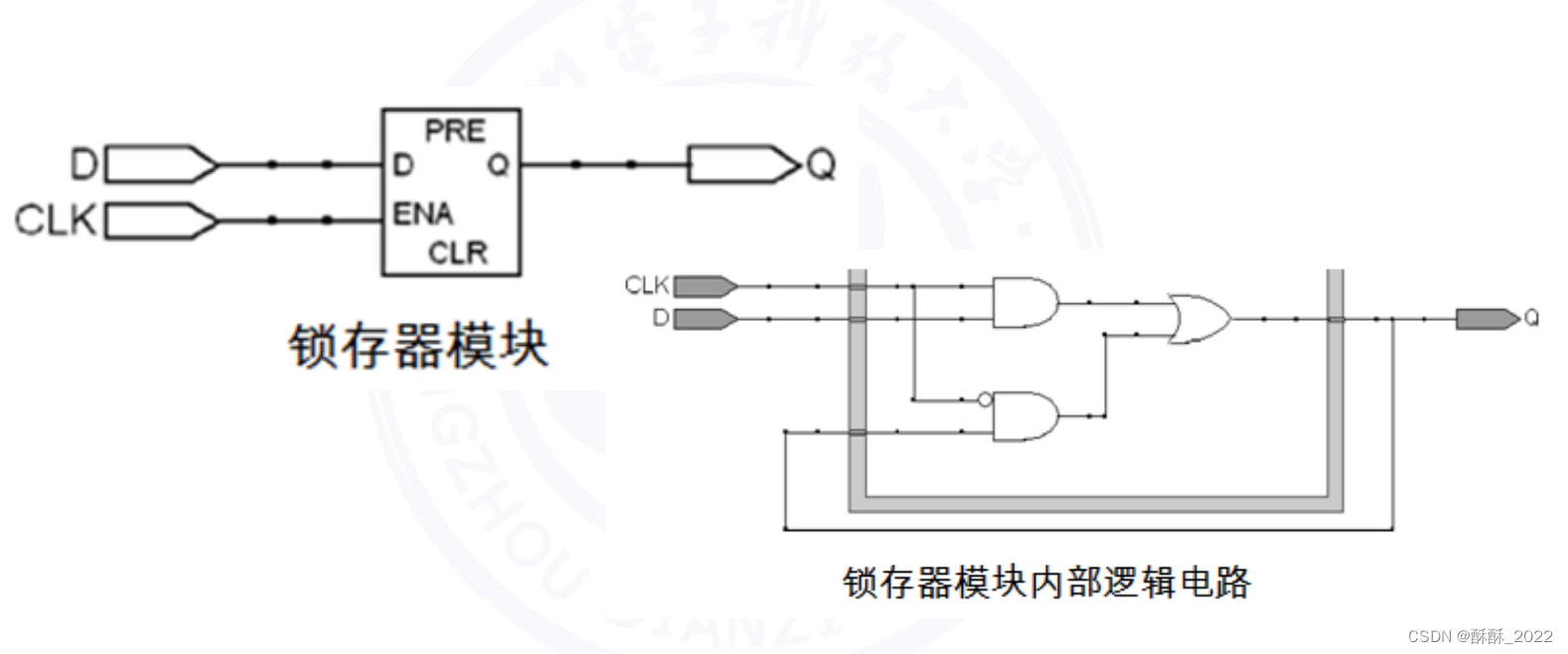 当CLK为高电平时,输出Q才随D输入的数据而改变; 而当CLK为低电平时将保存其在高电平时锁入的数据。这 就意味着需要引入存储元件于设计模块中。