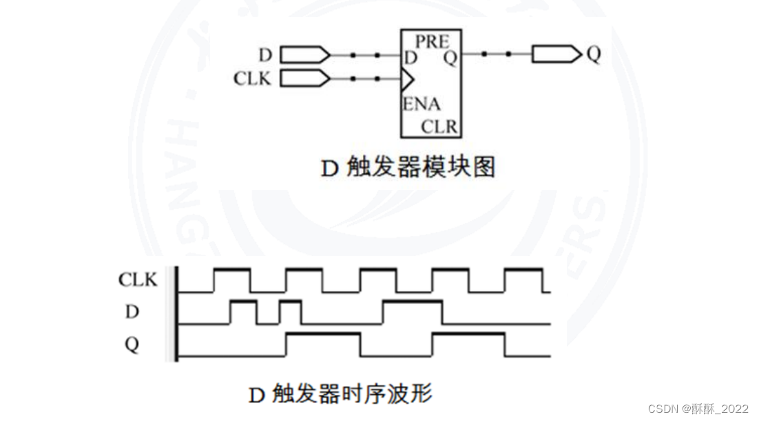 异步复位端:RST:只要RST等于0(有的触发器是高电平清0有效),D触发器输出立刻清0