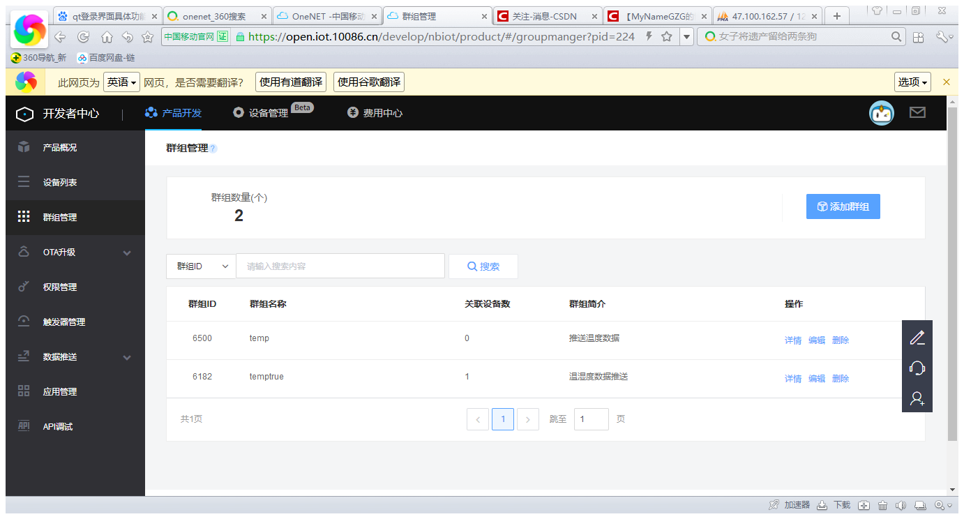 第五步:添加群组推送,上边图片中我们看到,群组的操作下方temp群组为添加群组推送,