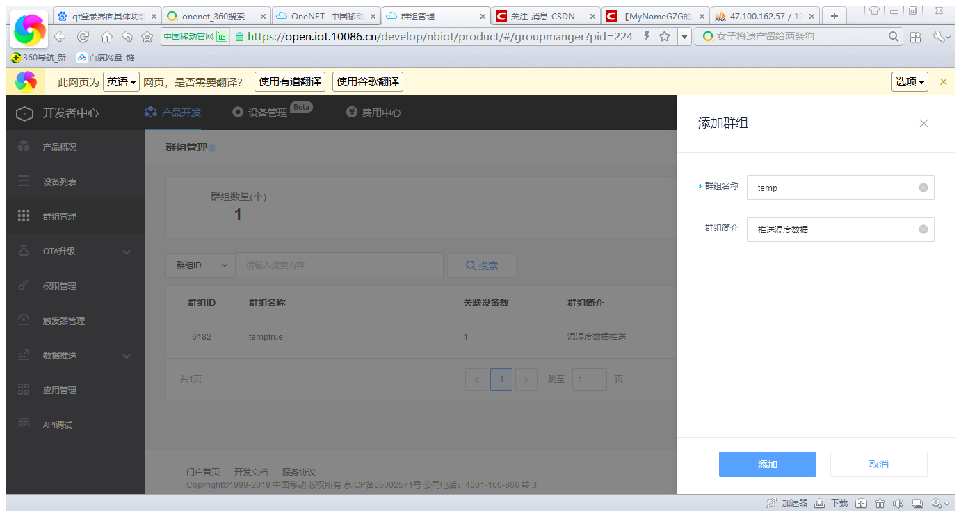 第三步:点击添加群组,填写群组信息,点击添加,则添加一个群组