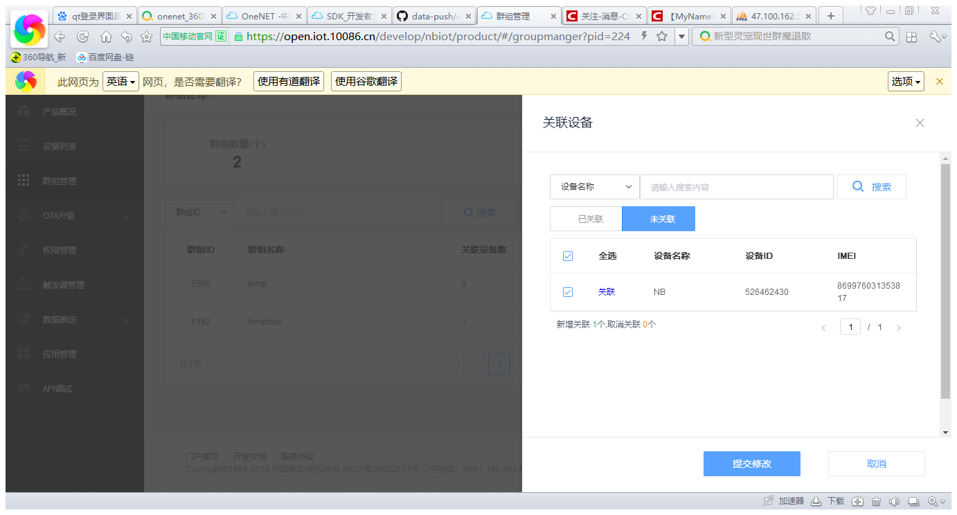 细心的同学会发现为以下步骤temp群组关联设备数为0,咳咳,这里是我的一个疏忽,其实添加关联设备是后期突然发现这个问题后加的,但之后的步骤流程是没有问题的,前后还是绝对能衔接上的