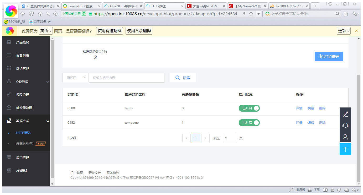 数据推送形式主要有两种:全局推送和群组推送,全局推送则是把所有数据都推送个第三方平台,群组推送则是可以选择推送一部分关联设备