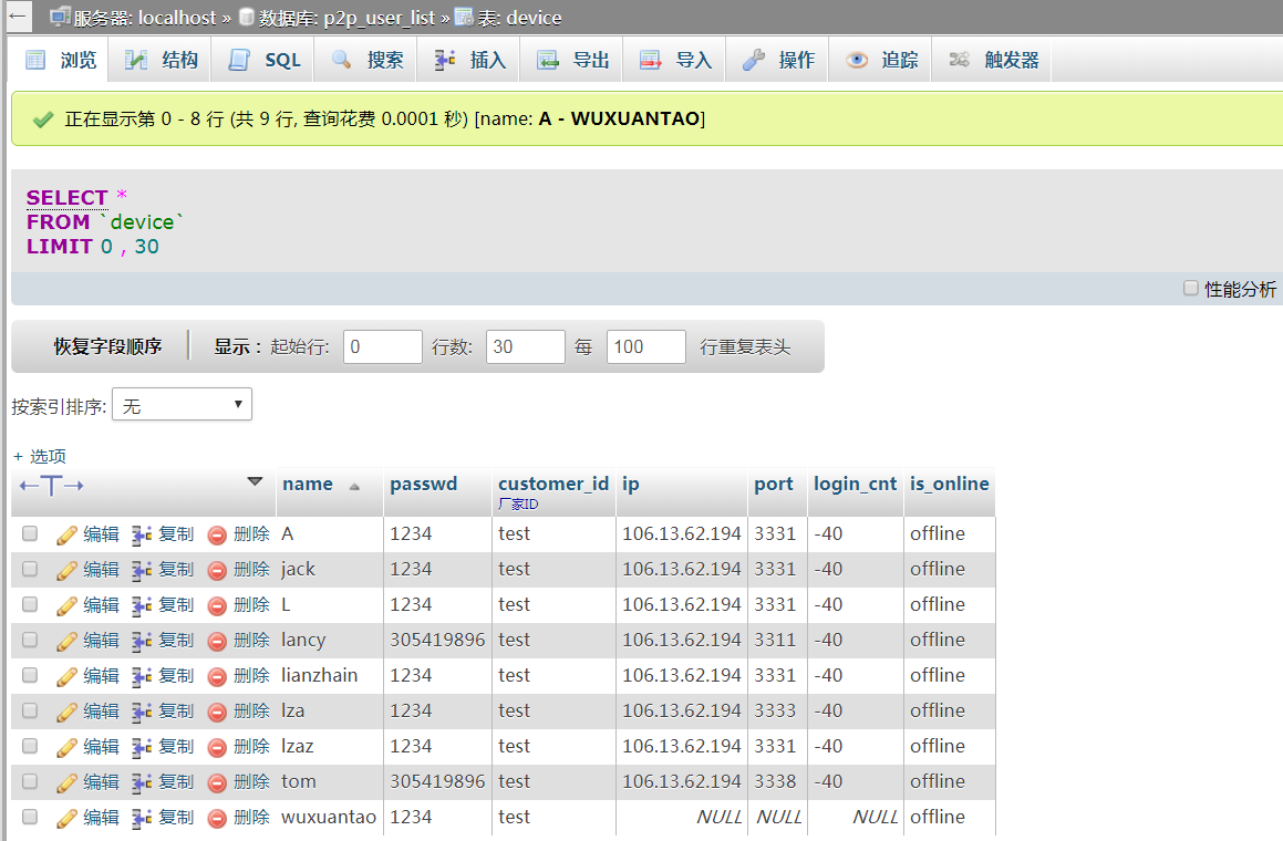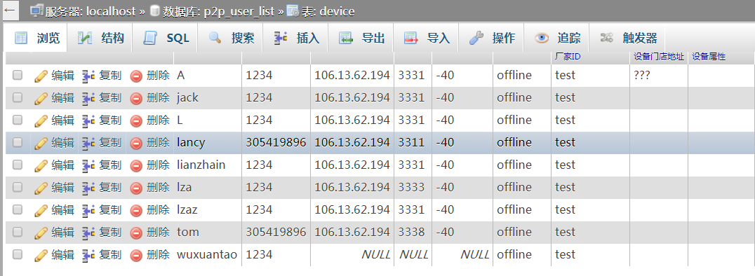 需要创建 数据库:p2p_user_list 表:device