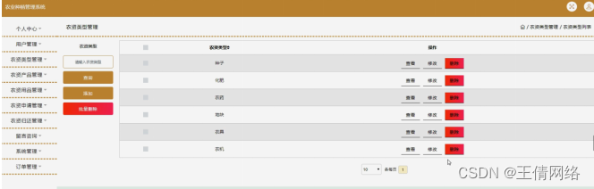 农资类型管理,在农资类型管理页面可以对农资类型信息进行查看,修改和删除等操作,如图5-10所示。