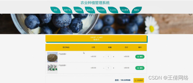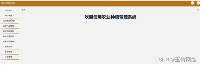 农业种植管理系统,在系统首页可以查看首页,农资产品,农资用品,新闻公告,留言咨询,个人中心,后台管理,购物车等内容,并进行详细操作;如图5-1所示。