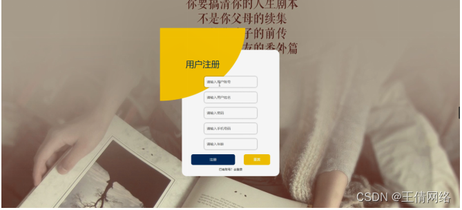 用户注册,在用户注册页面通过填写用户账号,用户姓名,密码,手机号码,年龄等信息进行注册操作,如图5-2所示。