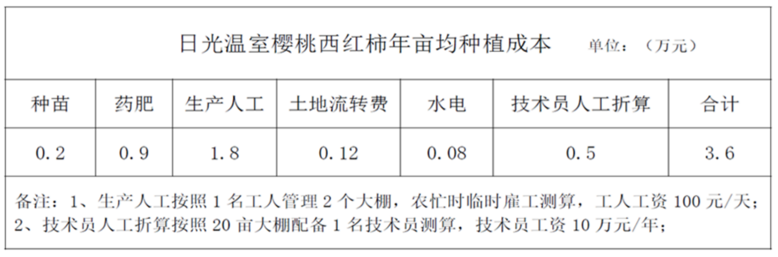 某地区规模化种植园生产西红柿年种植成本统计: