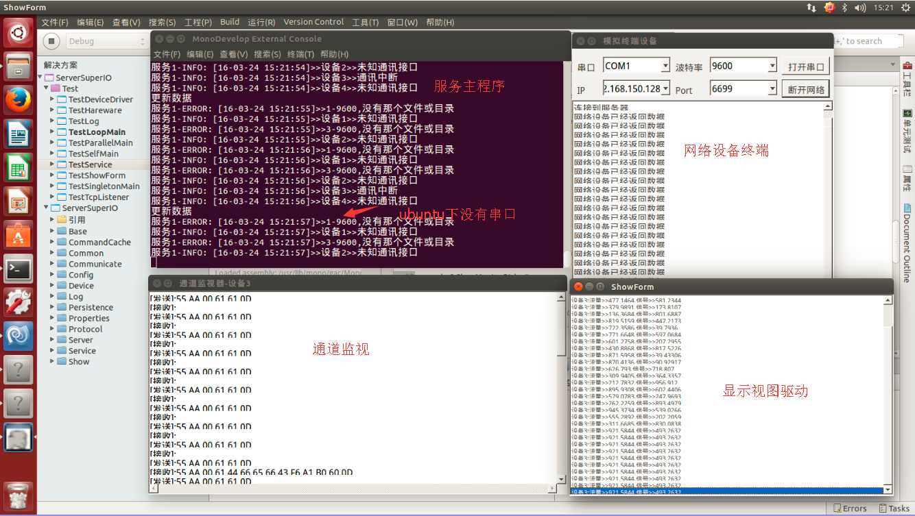 - 一个设备驱动同时支持串口和网络两种通讯方式,可以监视IO通道数据。