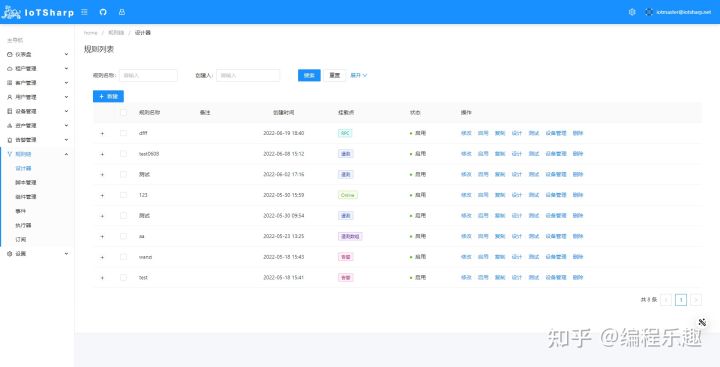 8、规则链:设备器、脚本管理、组件管理、事件、执行器、订阅。