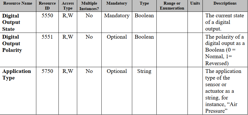 以上就是呆萌花瓣最近收集整理的关于IPSO-Smart-Objects 1.对象2.IPSO Object: Digital Input3. IPSO Object: Digital Output4. IPSO Object: Analog Input5. IPSO Object: Analog Output 6.IPSO Object: Generic Sensor的全部内容,更多相关IPSO-Smart-Objects 1.对象2.IPSO内容请搜索靠谱客的其他文章。