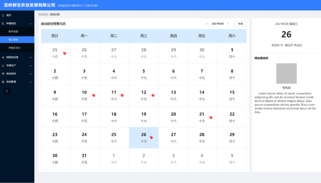 云洋物联智慧农业平台是一家基于农业物联网设备和AI种植模型,为温室大棚、大田提供标准化智能种植方案的技术服务商。在实际生产种植环境中,云洋物联以每个大棚、大田为基准点,根据作物的不同茬口及生育期,匹配出适宜作物生长的环境参数,并以此建立合适的智能种植方案。 具体而言,云洋系统会通过物联网采集设备实时上报的数据,判断棚内环境是否适宜种植作物生长。当棚内环境触发设备设置对应阈值时,关联状态下的手机等电子设备将会启动告警通知,或触发控制设备的自动控制开关。此外,通过模型算法还能计算出大棚、大田积温情况,利用空气温度、湿度等环境要素来预测是否会触发虫害、病害等危害。