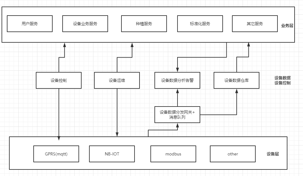 - 业务层则是对实际业务的抽象,结合用户园区地块及绑定的物联网设备、设备产生的数据,结合标准化种植模型进行方案推荐及病害虫害的预测。