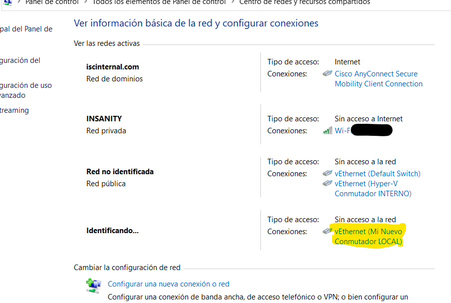 (注意:在图片上可以看到另一个交换机 Hyper-V Conmutador INTERNO。 它用于我的另一个子网。 此配置中不需要它)