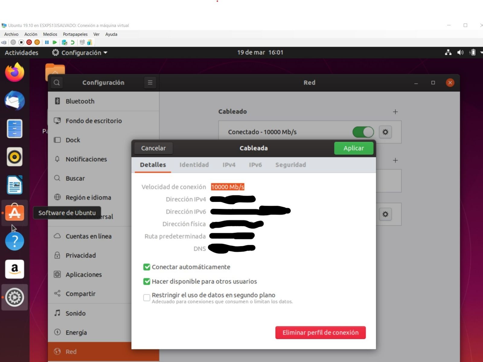 此时,你可以完成新的本地网络的配置。 为此,将光标放在连接 Mi Nuevo Conmutador LOCAL 上,单击并转到属性,再转到 IPv4 协议,以便分配一个固定 IP 地址: