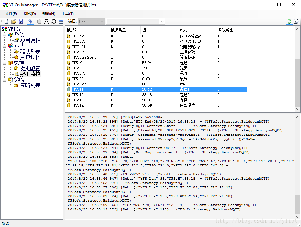 和微软及阿里的物联网平台不同,百度的云连接非常简单。客户ID可以任意,用户名就是和设备对应的用户名,密码就是身份对应的密码,没有所谓的toKen等概念。