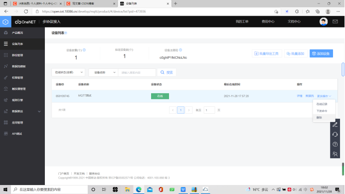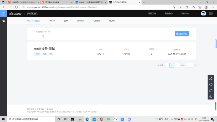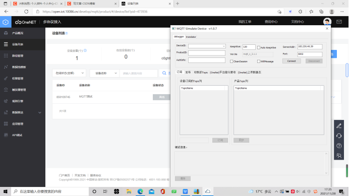 以上就是爱笑唇彩最近收集整理的关于基于ONENET云平台数据的MQTT协议的使用及模拟数据和搭建。的全部内容,更多相关基于ONENET云平台数据内容请搜索靠谱客的其他文章。