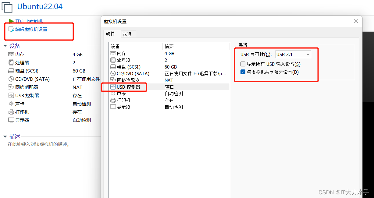 打开VMware,编辑虚拟机设置,在usb控制器中使用use3.0。
