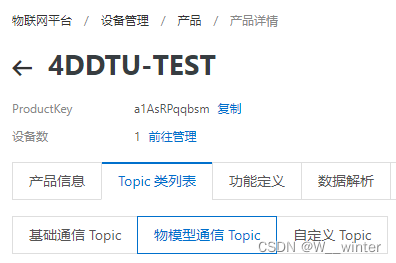 进入产品界面,选择Topic类列表,选择物模型通信Topic