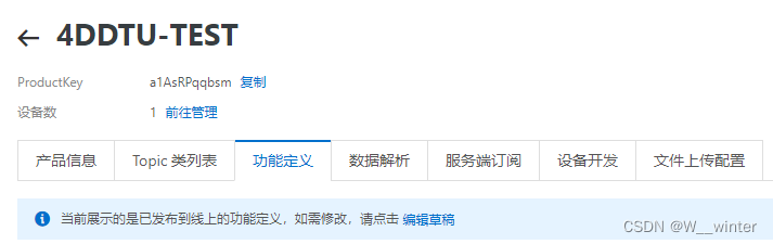 4.1、进入刚刚创建好的产品界面选择功能定义选项