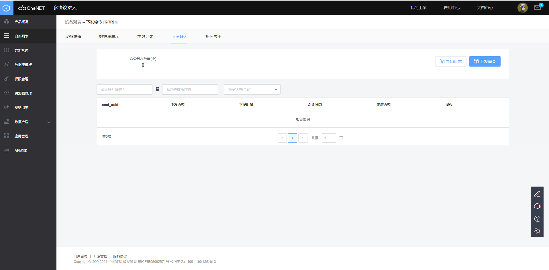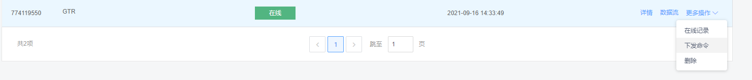 (1.)找到此页面设备的更多操作,在下拉列表中到找到下发命令,然后点击选择下发命令