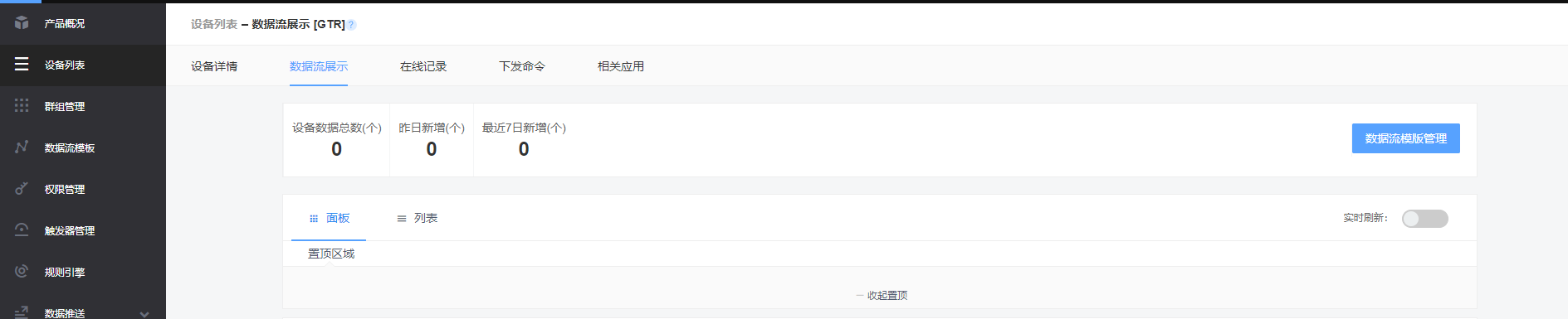(1.)首先我们可以看到在平台数据流展示中当前无任何数据