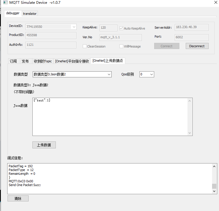 以上就是快乐乌冬面最近收集整理的关于硬件接入OneNET平台-MQTT协议(2)的全部内容,更多相关硬件接入OneNET平台-MQTT协议(2)内容请搜索靠谱客的其他文章。