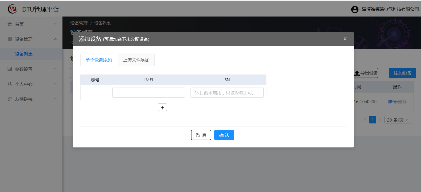 (1)首先登陆DTU配置平台,并添加设备