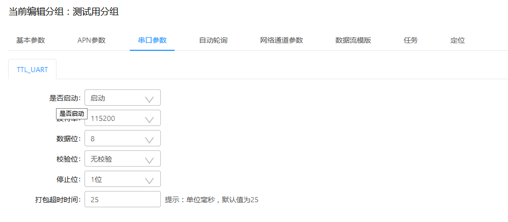 (3)点击参数设置——分组管理——参数配置——串口参数