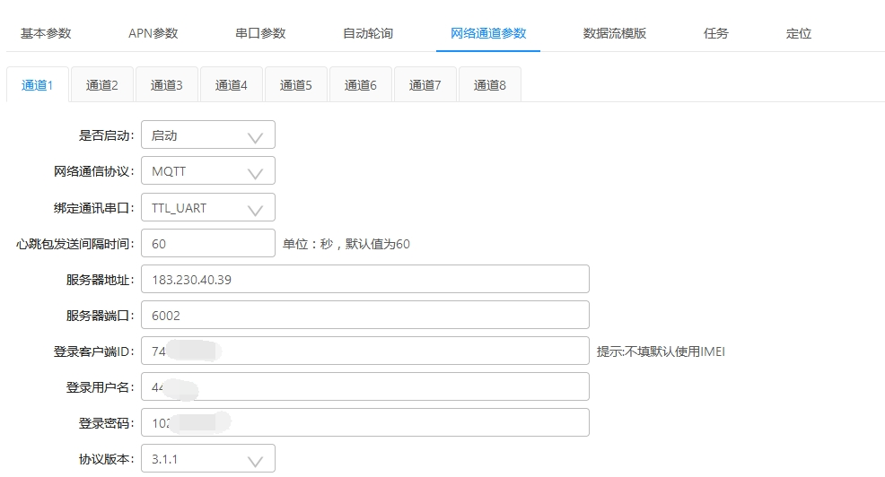 其他不需要配置,保存参数,重启DTU模块等待模块更新配置。