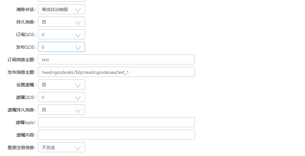 写入订阅的topic和发布的topic。