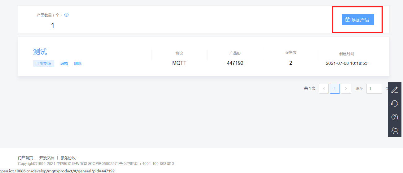 最后记录一下产品ID,设备ID,权鉴信息,一会儿配置DTU要用。