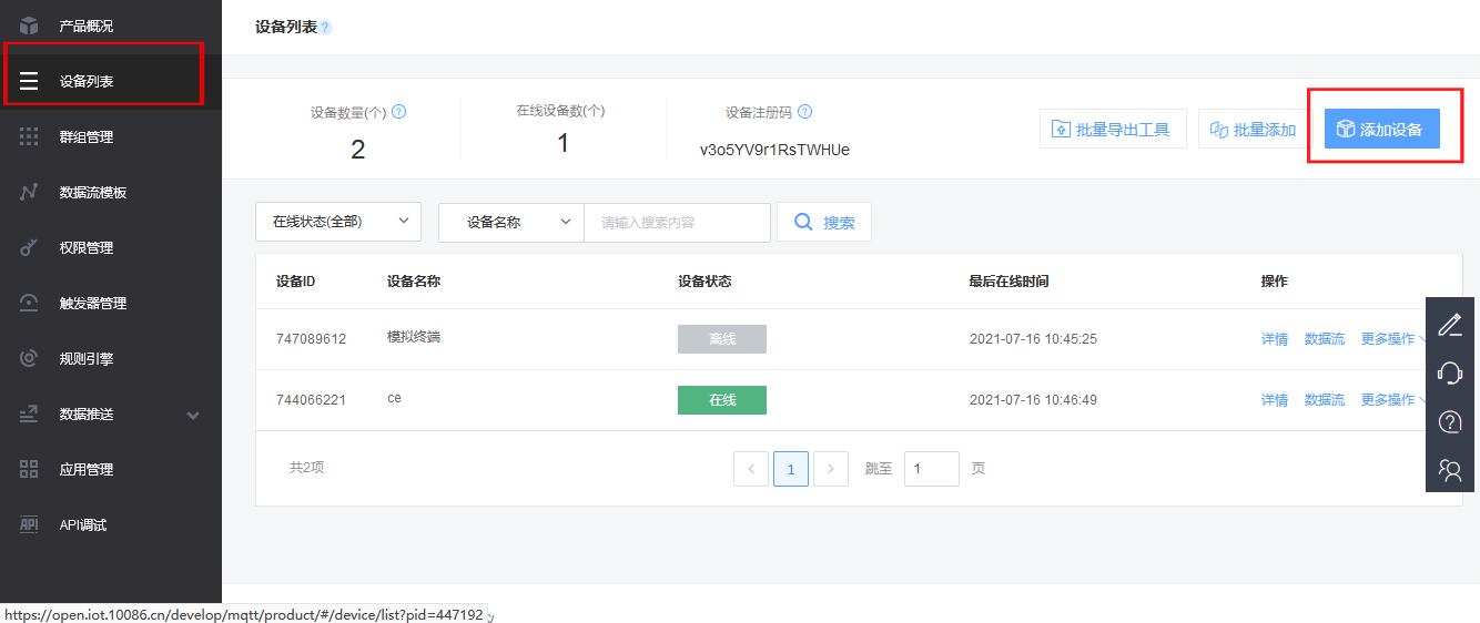 点击点击设备列表——添加设备