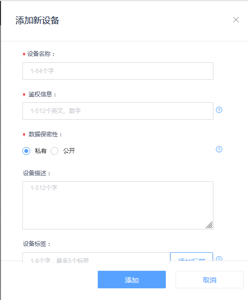 给新设备命名,权鉴信息子自定义就可以,点击添加即可完成。
