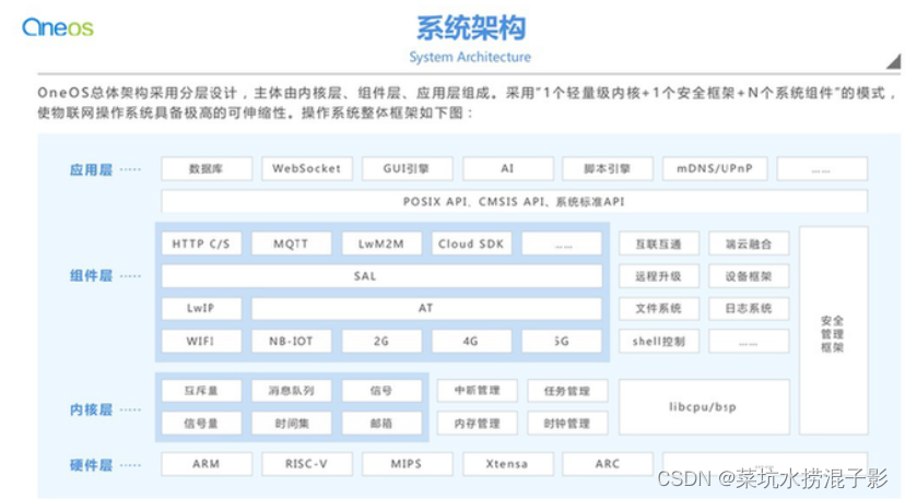 OneOS就是在这样的背景下诞生。OneOS采用分层架构设计,主体由“内核+安全框架+组件”构成。通过代码模块化设计,系统具备极高的可伸缩性,可结合垂直行业应用灵活裁剪。