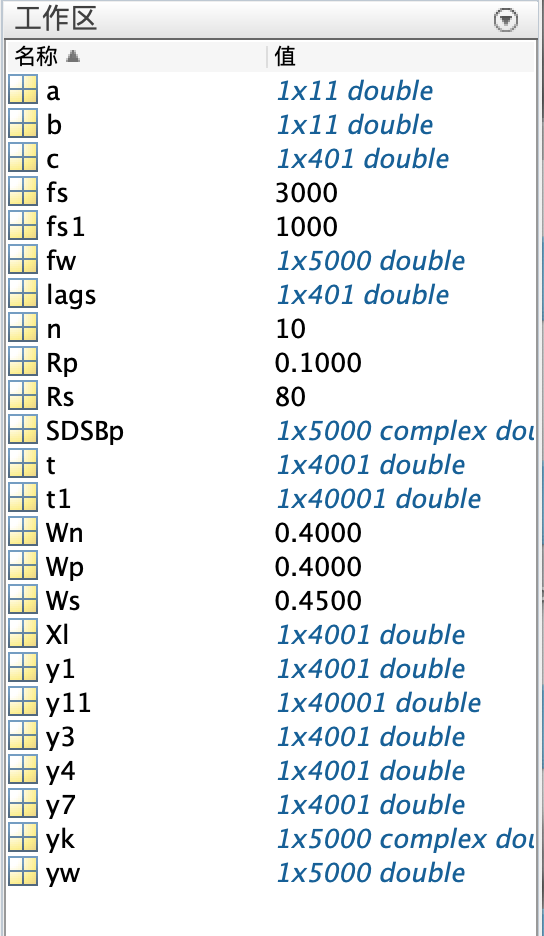 这一语句表示t是范围由-2到2,间隔为0.001的一围数组,想要看t的具体数值可以在命令行中输入上述语句,然后在工具区查看。这也是在使用matlab解决实际问题时常用的一个方法,当不确定哪里有问题的时候,点开工作区的数组看看就明白了。