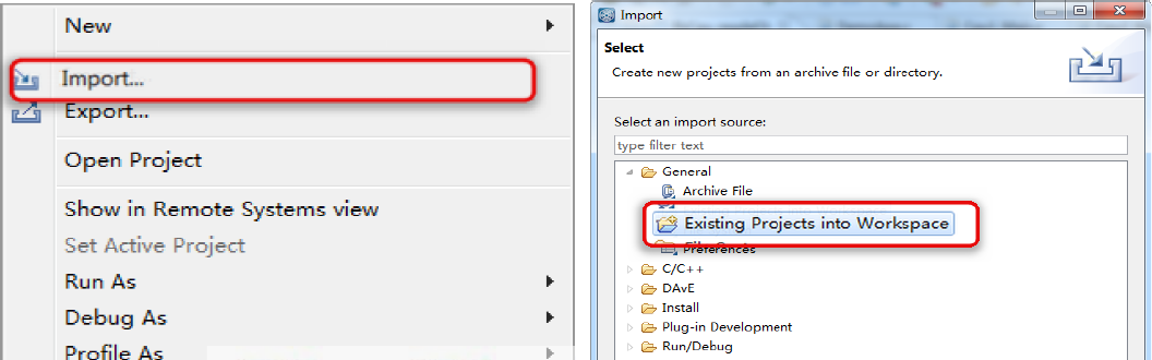 打开file 选项,使用Import 功能导入,或者在左边HighTec Project Explorer 窗口右键单击使用Import 功能。操作步骤具体如图1