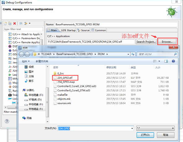 注意:在上图中,选择工程的IROM 文件夹里的elf 文件。