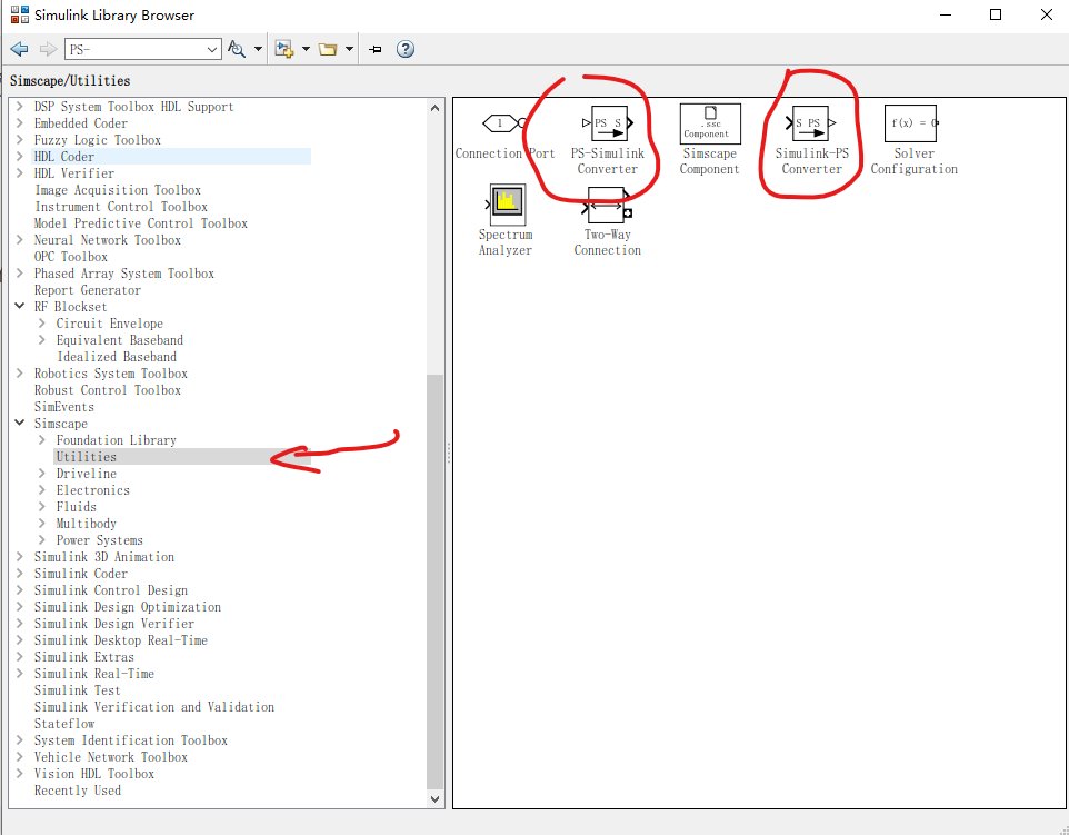 注意:在连线时会发现有些线无法连接,这是模块信号不兼容导致的。需要ps-simulink converter模块物理信号转化为simulink信号的模块。如果你要simulink信号转物理信号,S-PS模块。