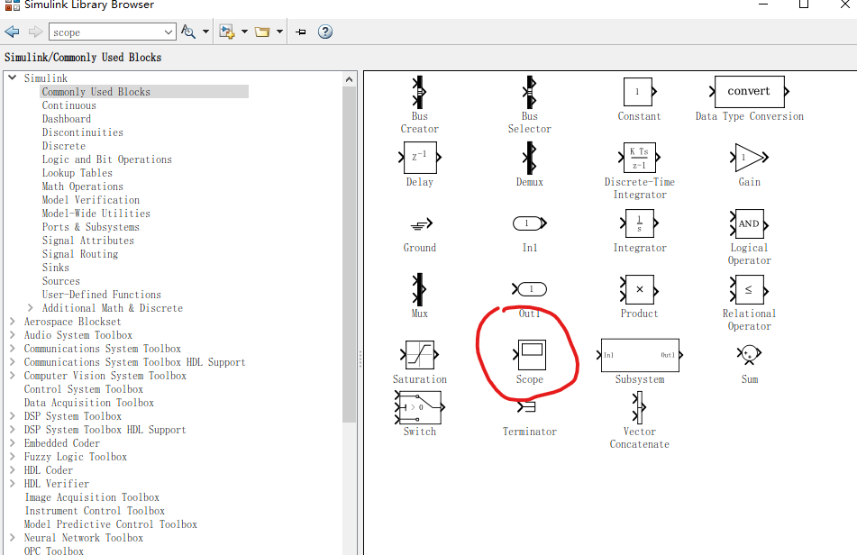 示波器Scope在: