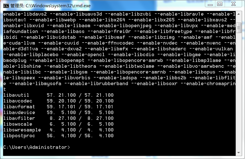 在dos下,输入 ffmpeg -version,看是否安装成功