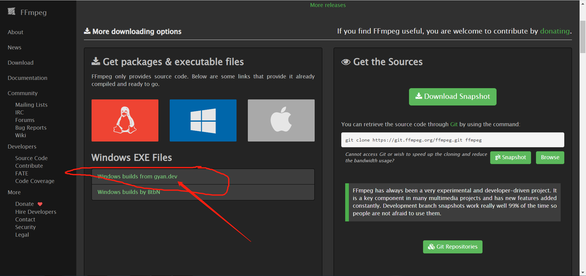 ffmpeg官方下载地址戳这里