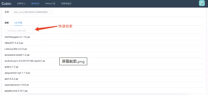 依赖监控(点击实例-〉展示当前实例的依赖包信息)