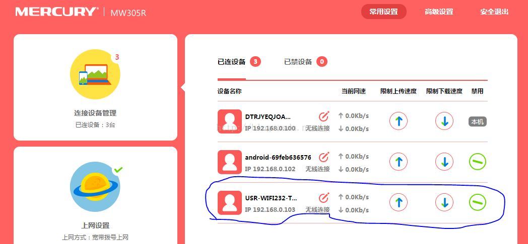 在上面可以看出来,最后一个就是我配置WiFi模块在路由器上了吧,第二个是我手机连接的。