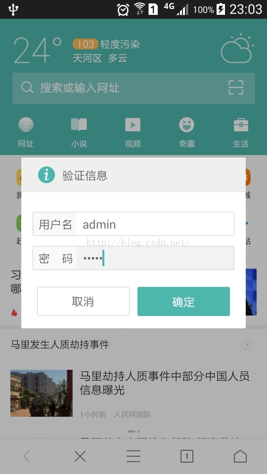 那么开放时候输入连接的ip地址就是:192.168.0.103,之前说了,还是默认端口8899,因为我没有重新配置端口。