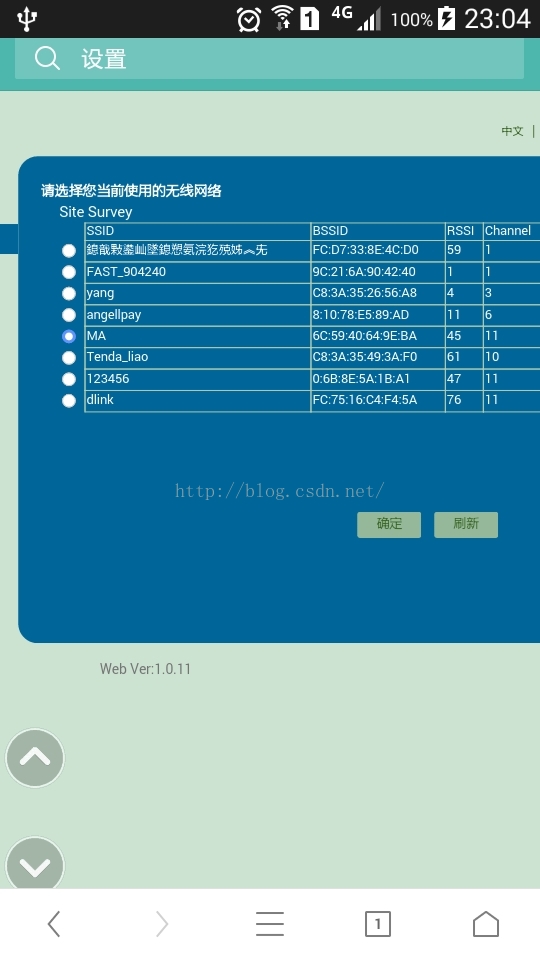 接下来先用手机配置WiFi模块,就是连上WiFi模块,然后打开手机上的浏览器输入10.10.100.254;然后输入用户名和密码都是admin。然后搜索路由,找到你的路由,连接,输入平时你和搜集WiFi上网路由器的密码。重启就成功。最后用电脑登陆你的路由器配置,可以查看是否连接成功。以及配置成功后的WiFi模块在路由器上的IP地址。
