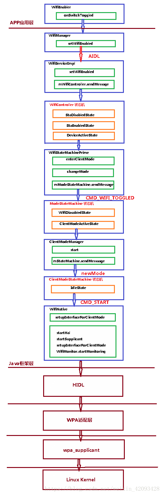这次的Wifi启动源码就讲到Android的java框架层,下次接着继续往下走流程: